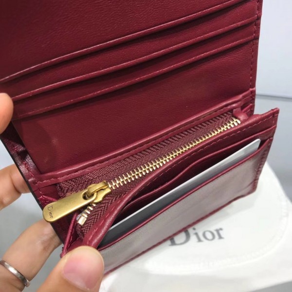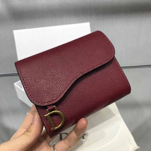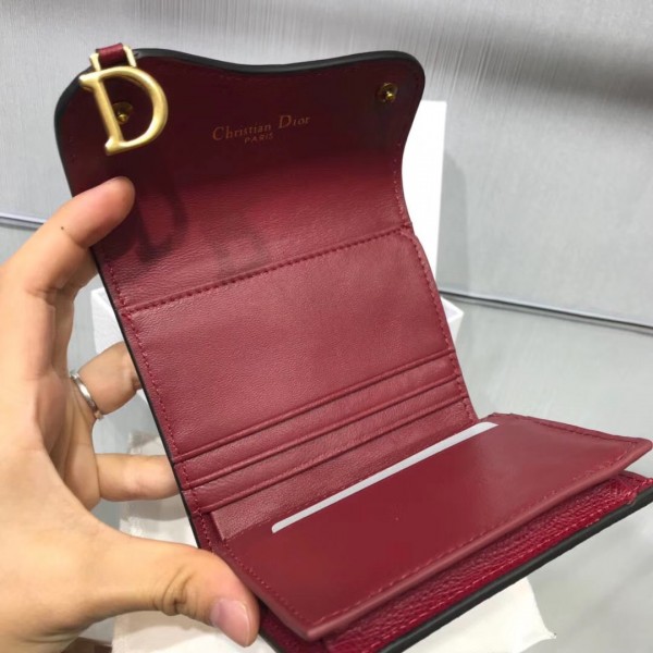 Dior Mini Saddle Tri-Fold Wallet In Scarlet Red Calfskin