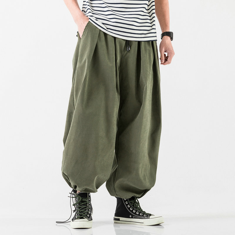 Drawstring Harem Pants Men Baggy Jogging Pants Japanese Style Male Crotch Wide Leg Pants Casual Loose Trousers
