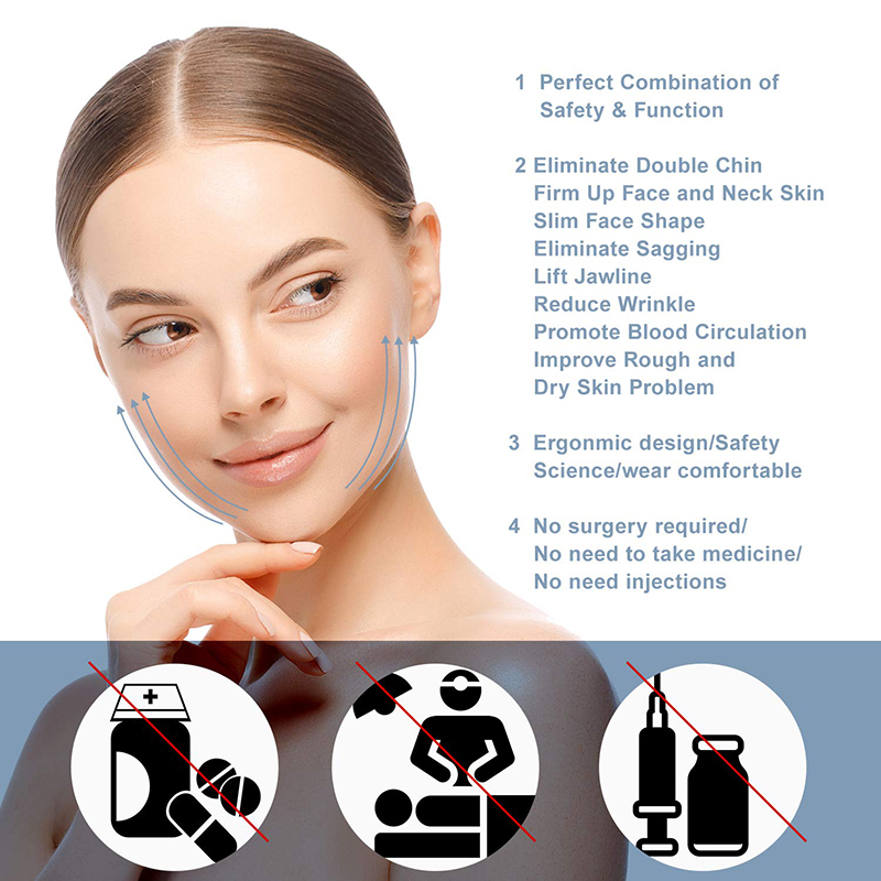 Get the Comfort and Safety: Our Double Chin Reducer is Hypoallergenic, Soft, Breathable, and BPA free. The reinforced adjustment belt of the face slimming strap makes it easier to adjust. The skin-friendly soft material is mild to the sensitive skin and has no side effects.