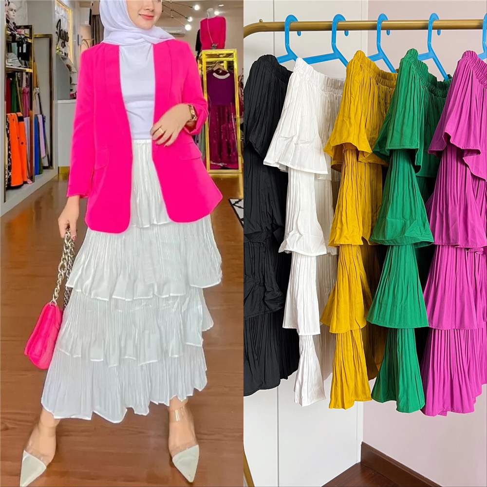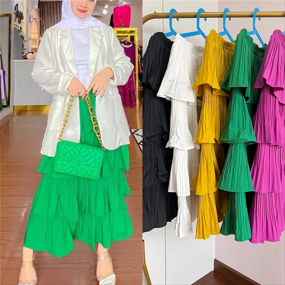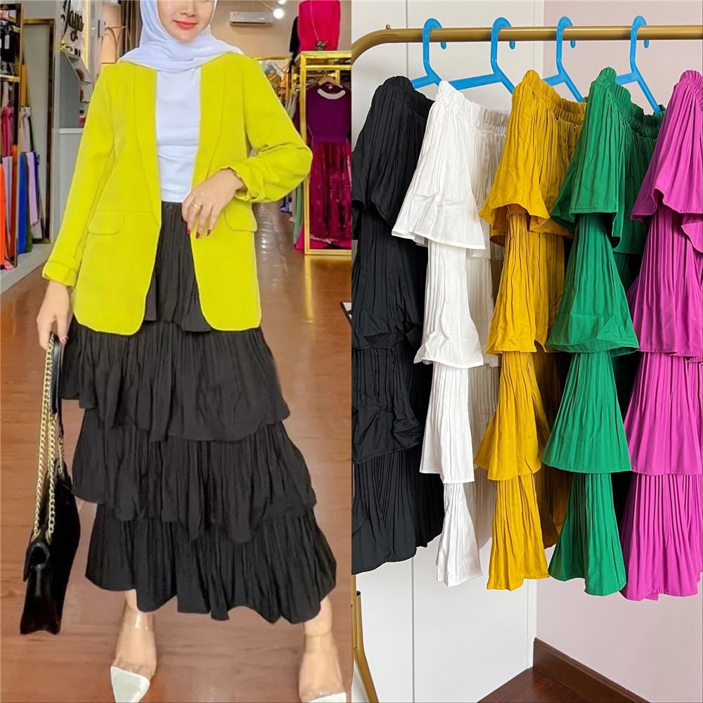 Elegant Multi Layer Pleated Long Skirts Women Casual Party High Waist Cake Dress Full Length Skirt For Muslim Islamic Ladies