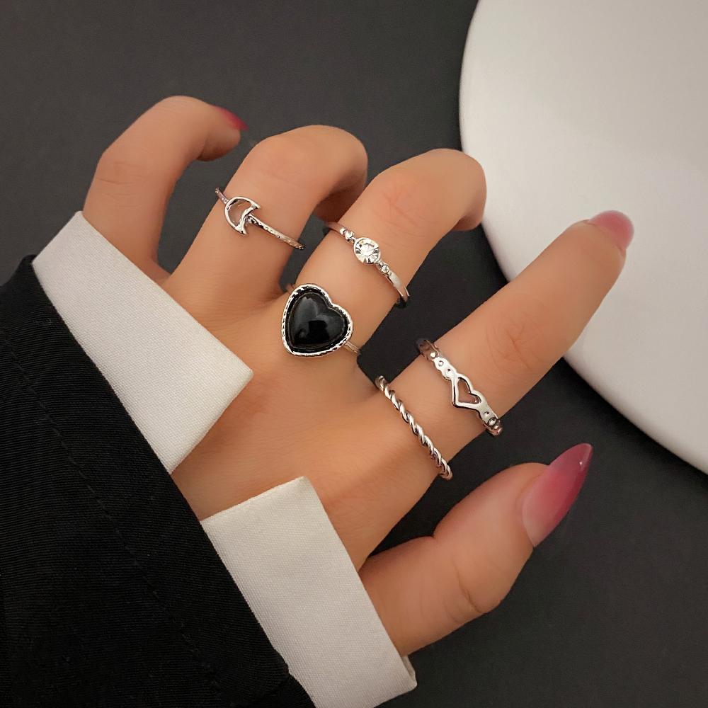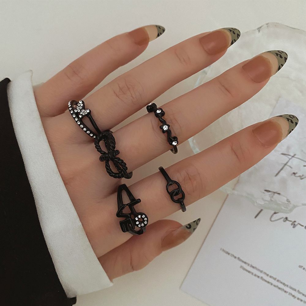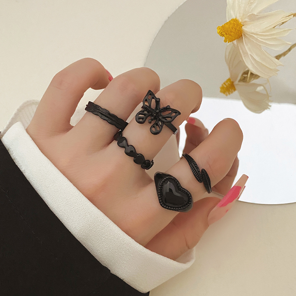 FAMSHIN Bright Black Metal Butterfly Love Rings Set for Women Girls Geometric Gothic Knuckle Joint Finger Ring Trendy Jewelry
