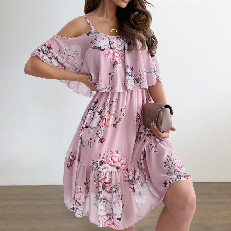 Floral Print Boho Beach Dress Backless Sexy Women Summer Dress Floral Ruffled Off Shoulder Casual Dress Jurk Dames
