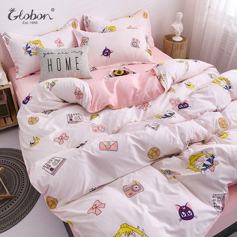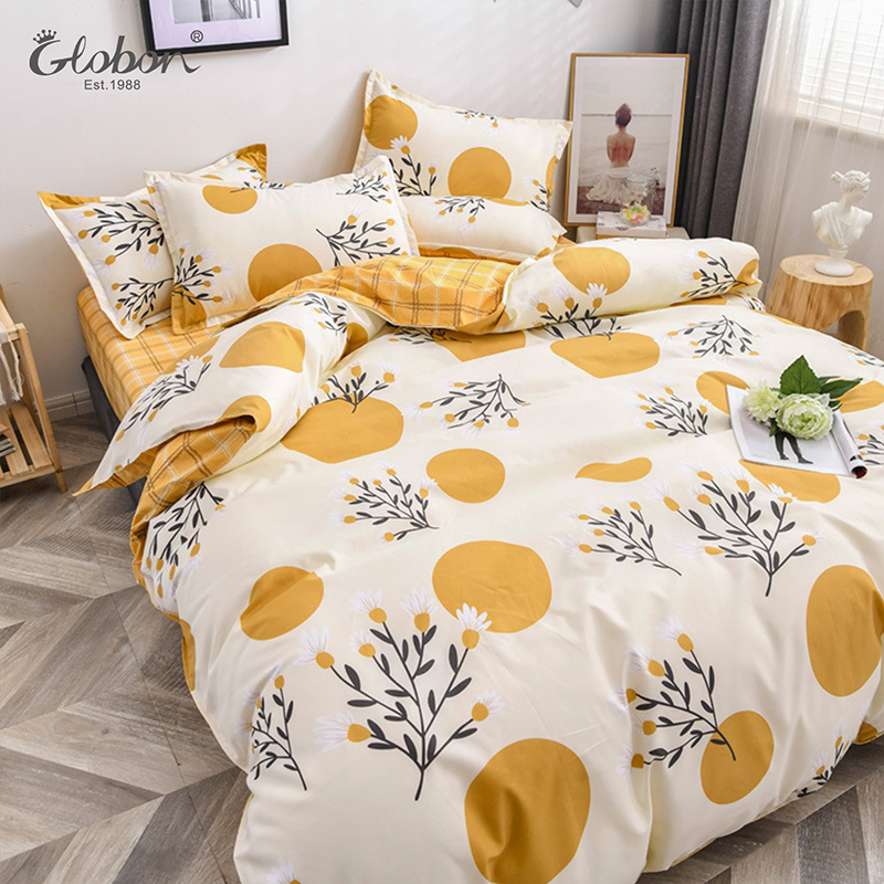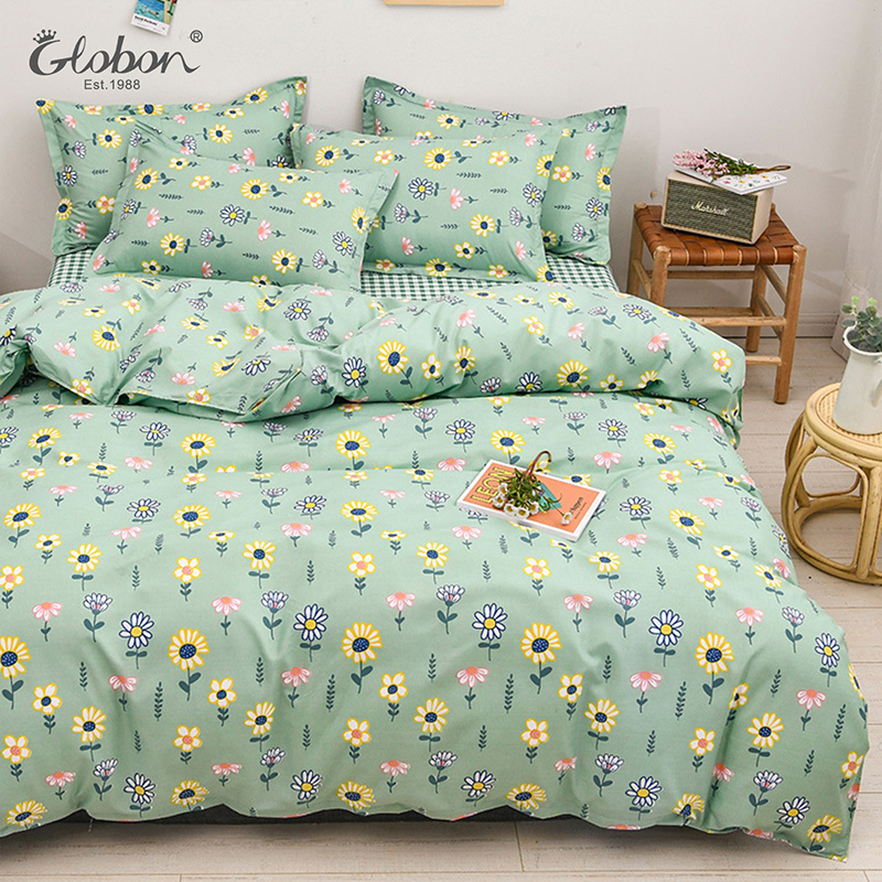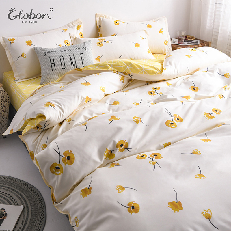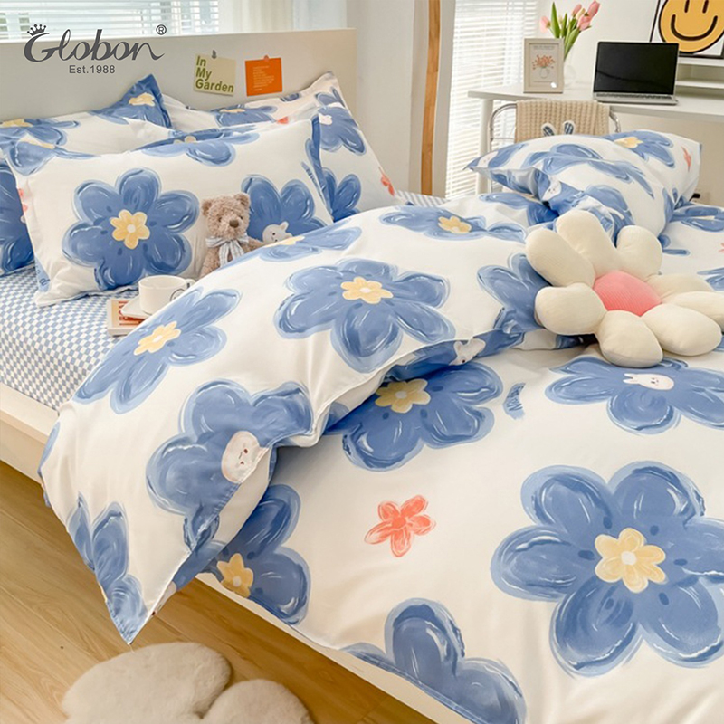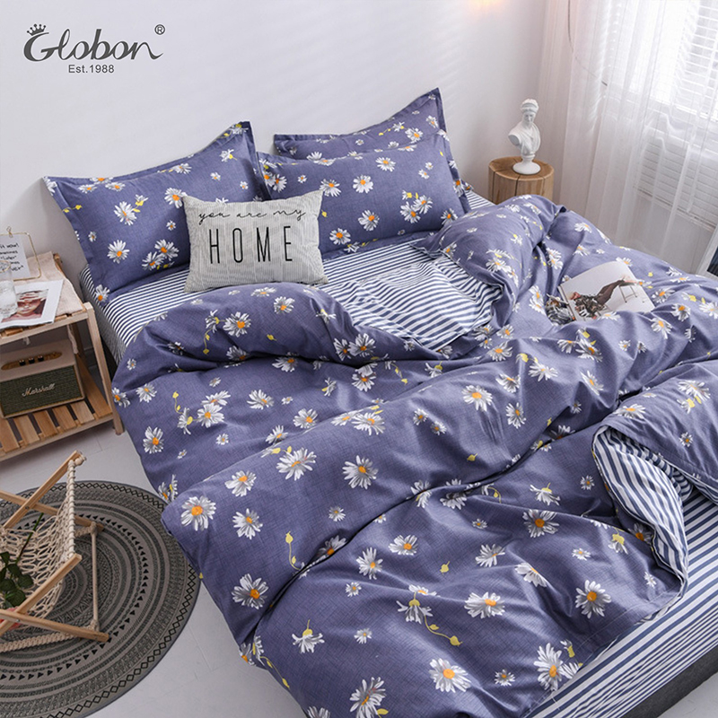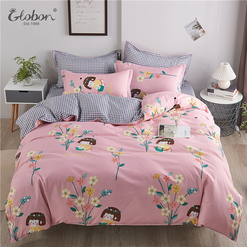 Globon Flower Print Bedding Set With Pillowcase Cotton Soft Comforter Duvet Cover Sets Queen King Size 4 pcs