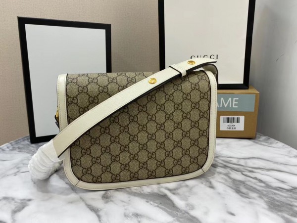 – Beige/ebony GG Supreme canvas, a material with low environmental impact, with white leather trim