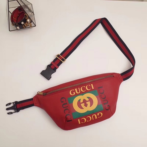 Inspired by vintage prints from the eighties, the Gucci logo is brought to the forefront. The retro-style motif is presented on the front of a belt bag in supple grained leather.
