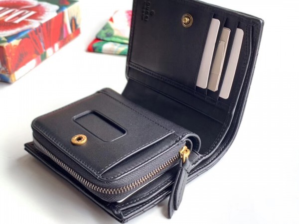 A scaled-down version of the original, Gucci’s ‘GG Marmont’ wallet still has plenty of space for all your essentials. Made from supple leather, it’s kitted with six card slots, a bill compartment and zipped coin pocket. The house’s monogram is seen on the vintage-inspired gold plaque and subtly stitched in the quilted exterior.