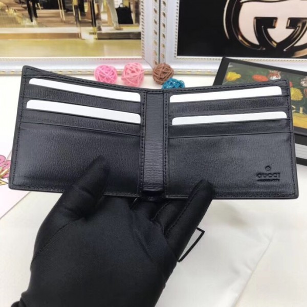 The Kingsnake, thought to symbolize wisdom and power, emerges as one of the signature details of Alessandro Michele’s collections. Here, it is printed across a bi-fold wallet made in black leather.