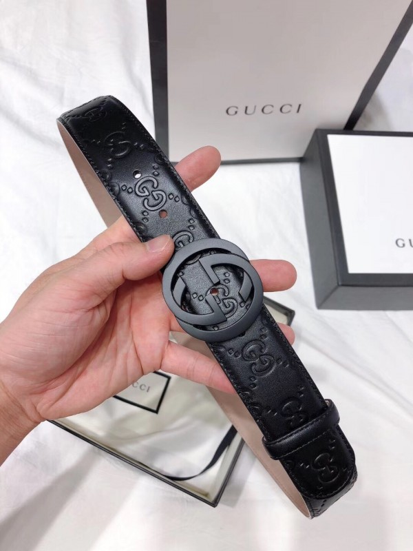 Gucci Black Signature Leather 38MM Belt with Interlocking G Buckle