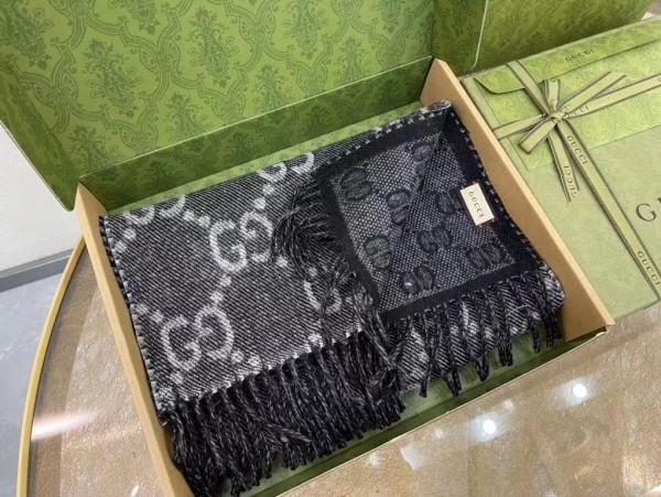 The front and back GG pattern in reverse colors adds a playful note to this soft jacquard wool scarf. The monogram motif dates back to the 1970s, recalling the initials of the founder Guccio Gucci. Here it is presented in a contrasting shade of grey, while black tassels complete the style.