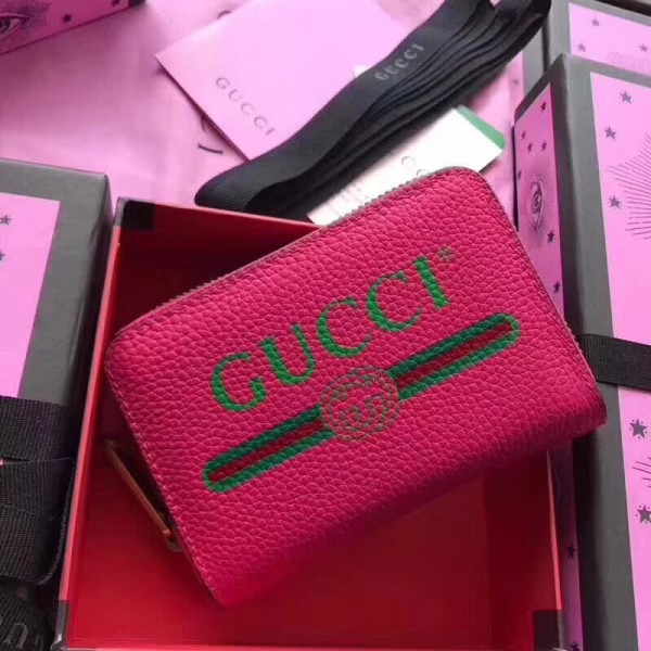 Inspired by vintage prints from the eighties, the Gucci logo is brought to the forefront. The retro-style motif is presented on the front of a zip around card case in supple, textured leather.