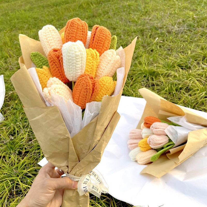 Hand-Knitted Rose Bouquet Homemade Crochet Finished Knitted Flower Sunflower Daisy Tulip Valentine's Mother's Teacher's Day Gift