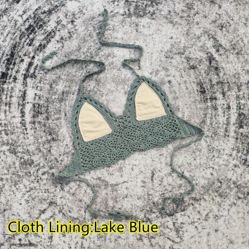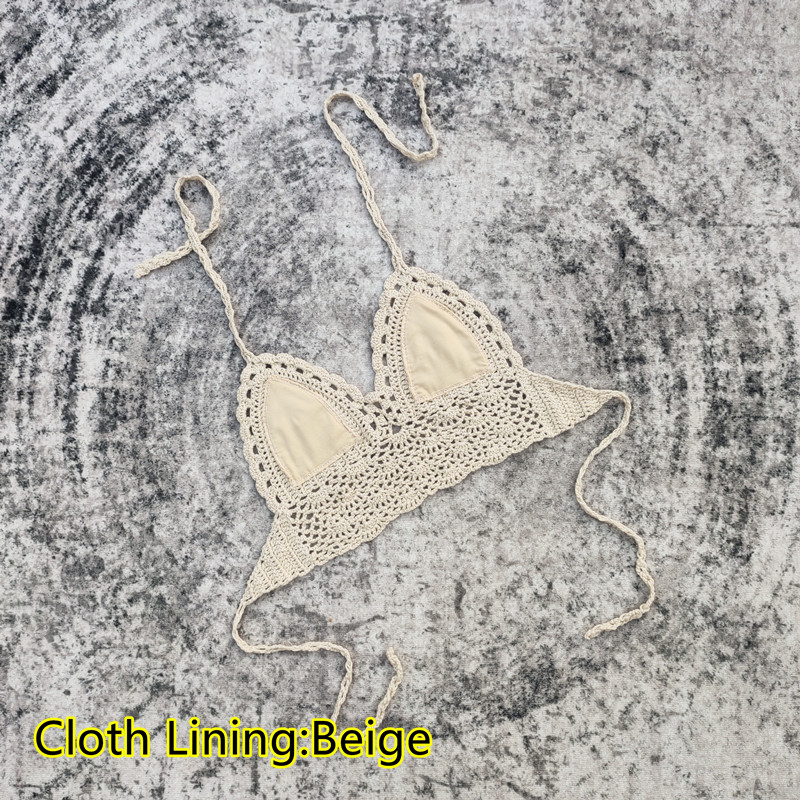 Handmade Crochet Lace Knit Bra Boho Beach Bikini Cami Tank Crop Top Halter