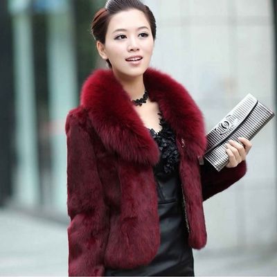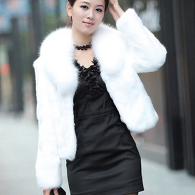 High Faux Rabbit Hair Coat Women's Warm Outerwear Autumn Winter Short Faux Fox Fur Collar Coat Jacket Overcoat