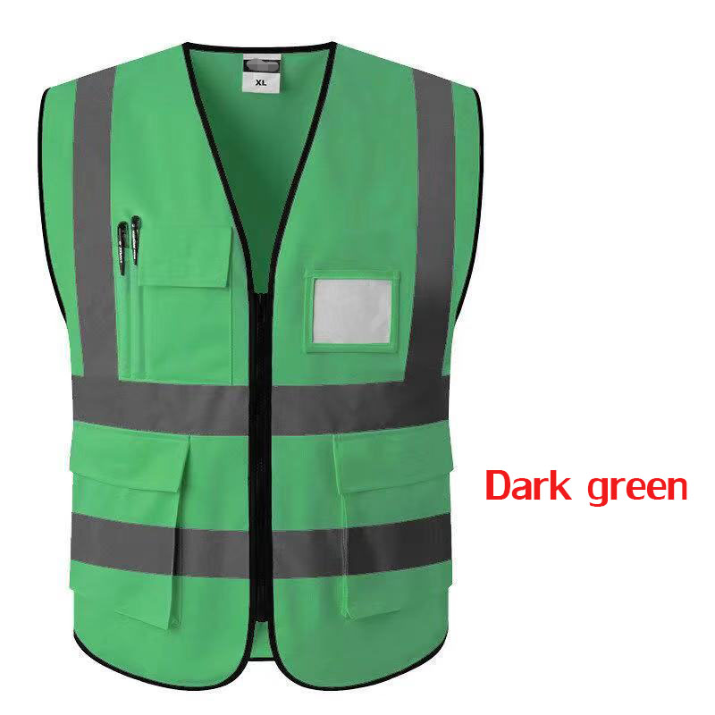 High Visibility Zipper Front Safety Vest With Reflective Strips Bicycle and Motorcycle Riding Safety Clothing Multi-Pockets