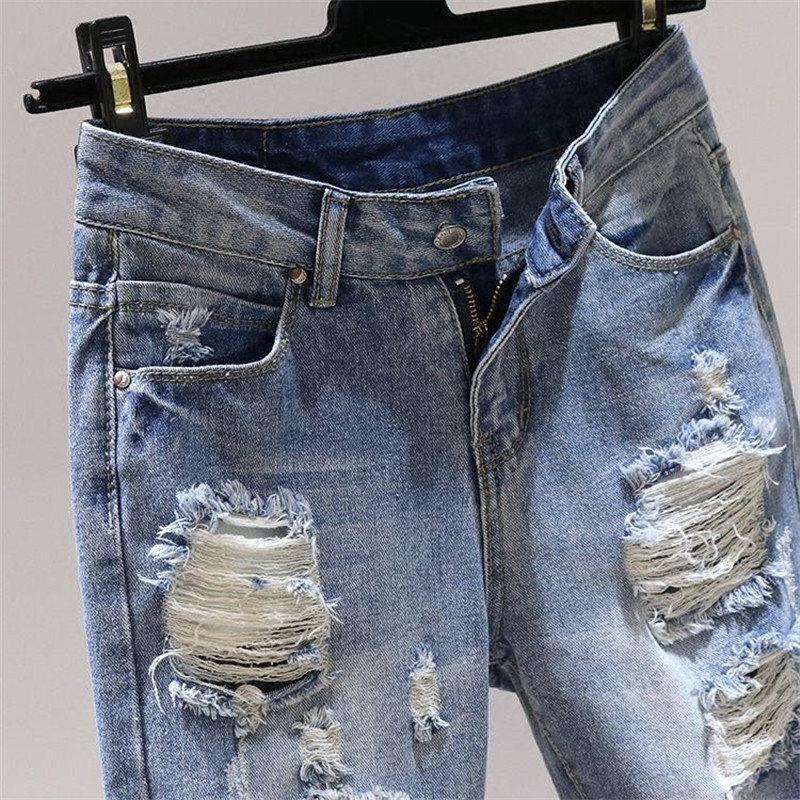 Hole JeansWomen Spring Summer Loose Bf High Waist Denim Pants Women Straight Nine Points Harem Cowboy Trousers W692