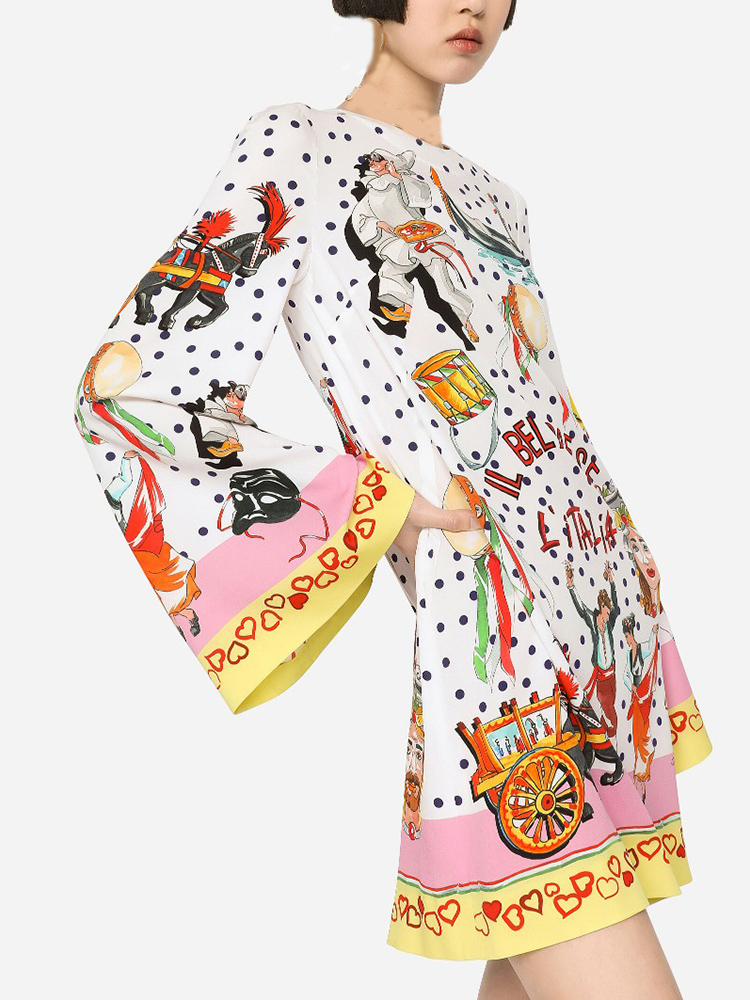 JUNLINNA SWeets Women Dress Summer Autumn High Street Printed Vestids A Crew Neck Long Sleeve Loose Younger Wear