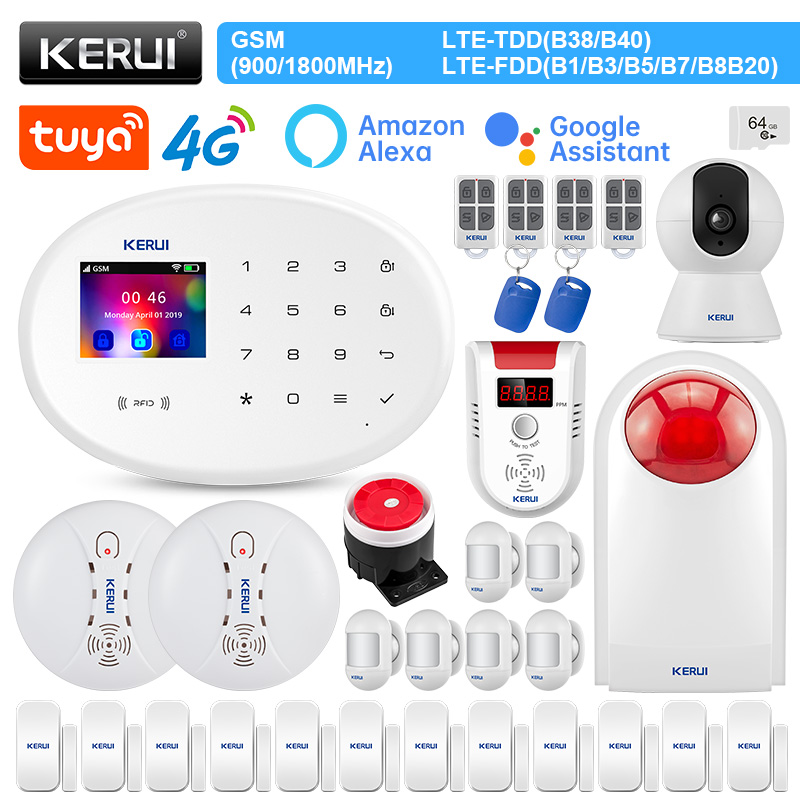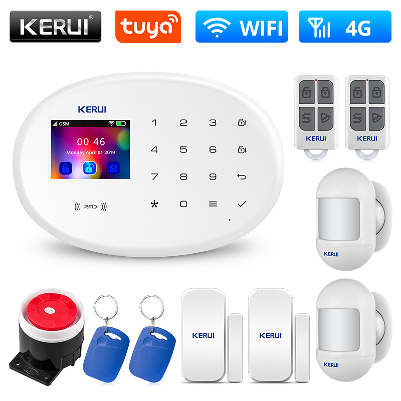 KERUI W204 4G WIFI GSM Tuya Smart Home Security Alarm System 2.4 Inch TFT Touch Panel APP Control Burglar Smoke Detector