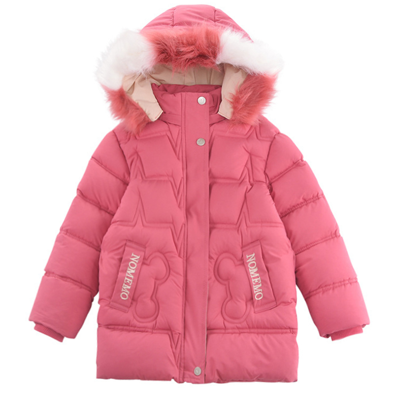 LANBENA Children's winter down jacket able children's medium and long printed wool collar hooded cotton