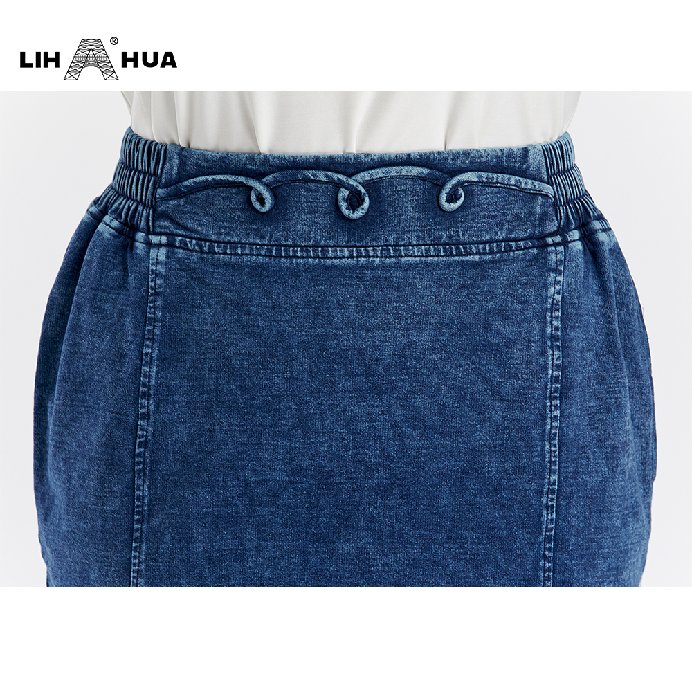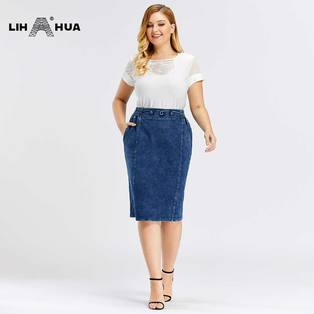 LIH HUA Women's Plus Size Casual Denim Skirt High Flexibility Skirt Knitted Denim