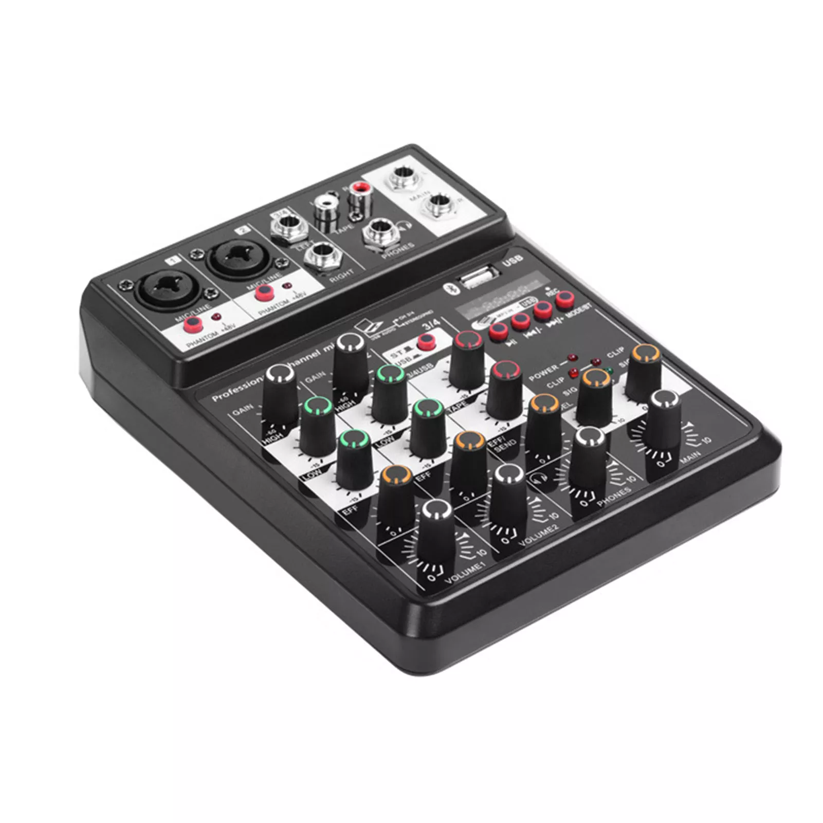 3. USB interface: This mixer has a USB port that can be connected to a computer and used as an audio output and input interface for playback and recording.