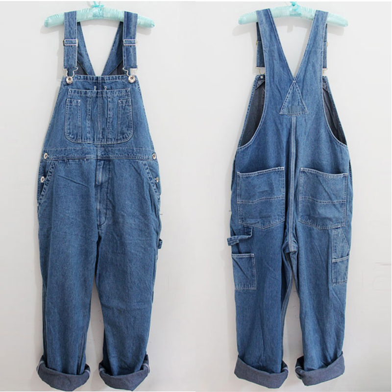 Men's Plus Size 26-40 42 44 46 Overalls Large Size Huge Denim Bib Pants Pocket Jumpsuits Free Shipping