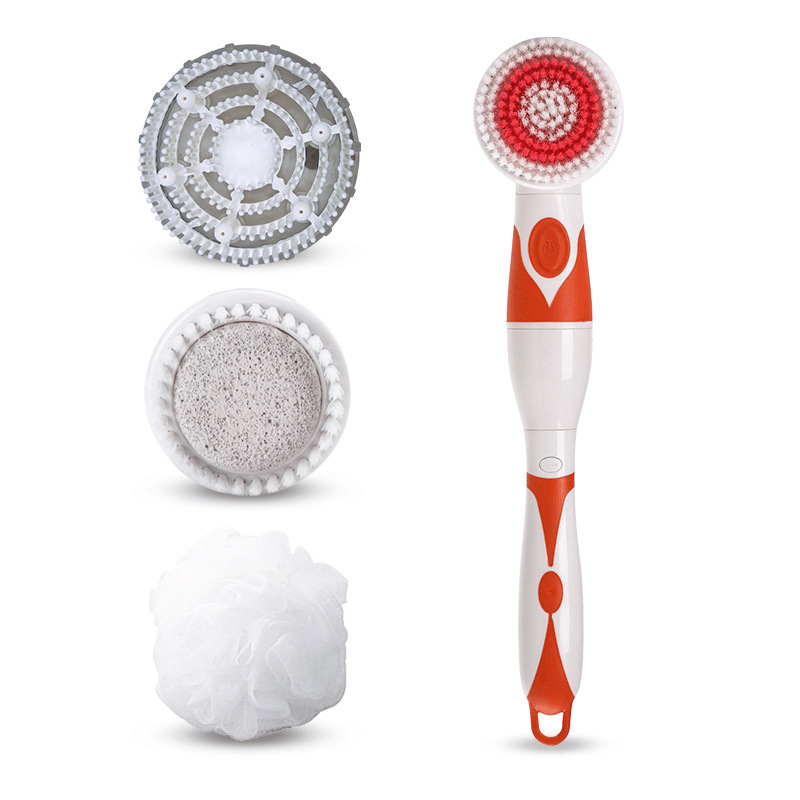 Note: The electric bath brush is composed of a brush head, a handle and a battery cover. It has the functions of rotating the brush with fast, medium and slow motor oscillation, pushing the brush up and down, and replacing the brush head. Purpose. The utility model has reasonable design, simple structure and integrated multi-function, which can not only help people to clean their backs, but also the vibration and massage functions of the motor can eliminate the fatigue of the human body, so that one can enjoy a comfortable bathing pleasure
