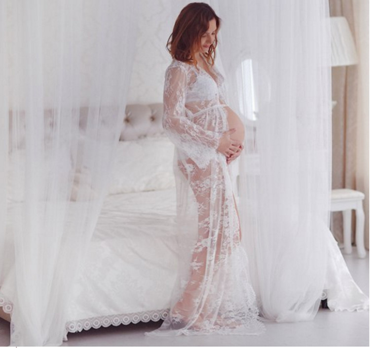 Off White Matenity Gown Photo Shoot Maternity Photography Props Lace Dresses Floor Length Lace Maternity Maxi Dress See Through