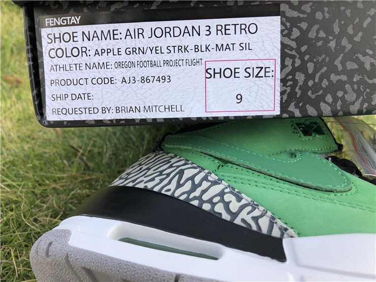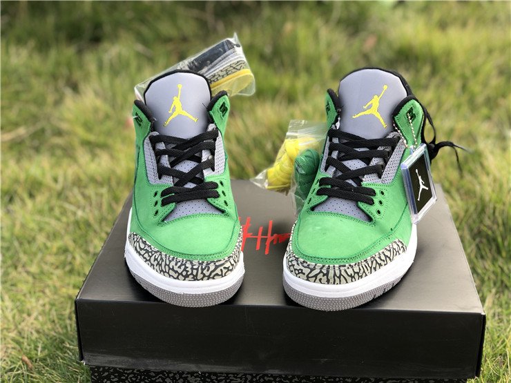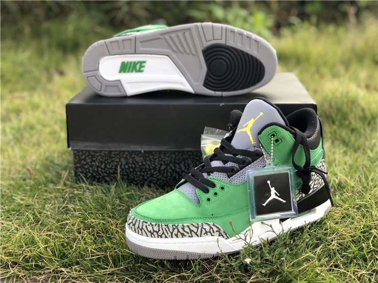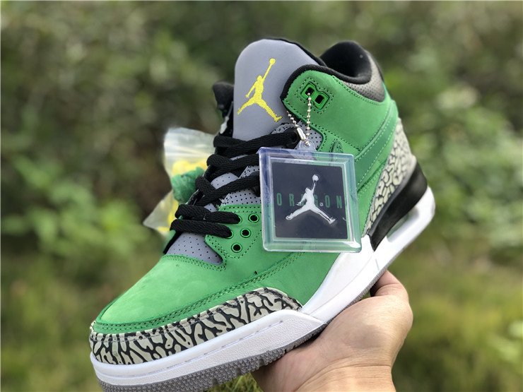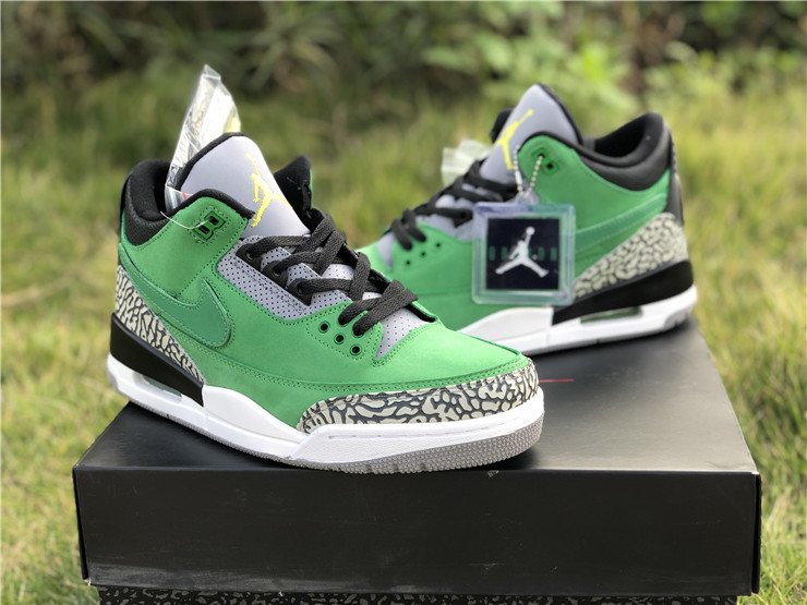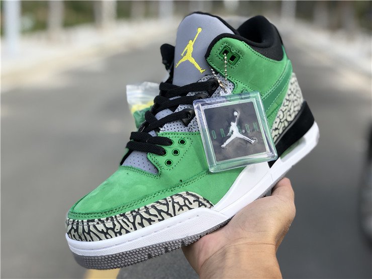 PK AIR JORDAN 3 OREGON BLACK DARK GREY GREEN 3M REFLECTIVE