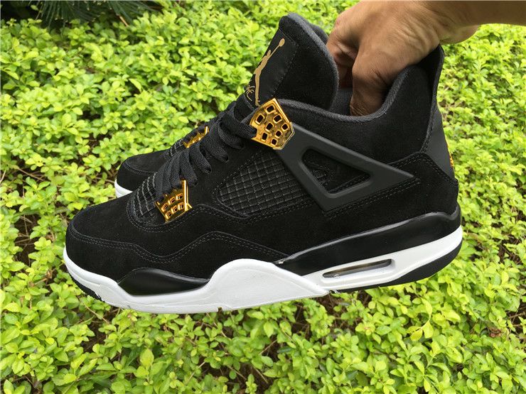 PK AIR JORDAN 4 RETRO ROYALTY BLACK SUEDE METALLIC GOLD