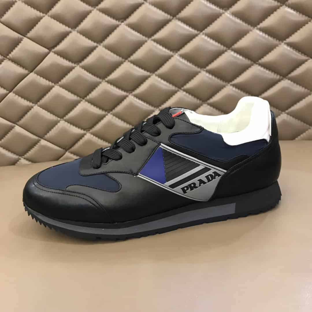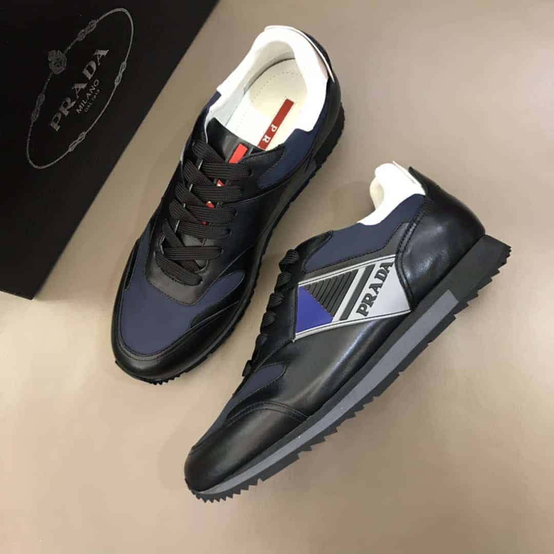 PRADA MACRO RE-NYLON AND BRUSHED LEATHER SNEAKERS – PD023
