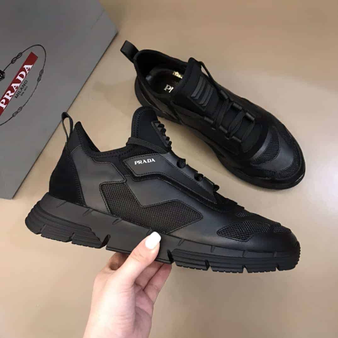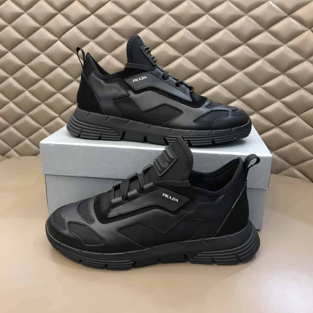 PRADA MACRO RE-NYLON AND BRUSHED LEATHER SNEAKERS – PD023