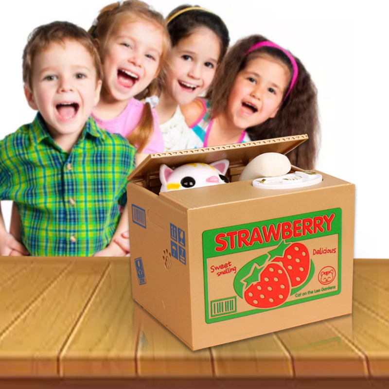 Put your coin in the white plate, and the kitten will catch it.