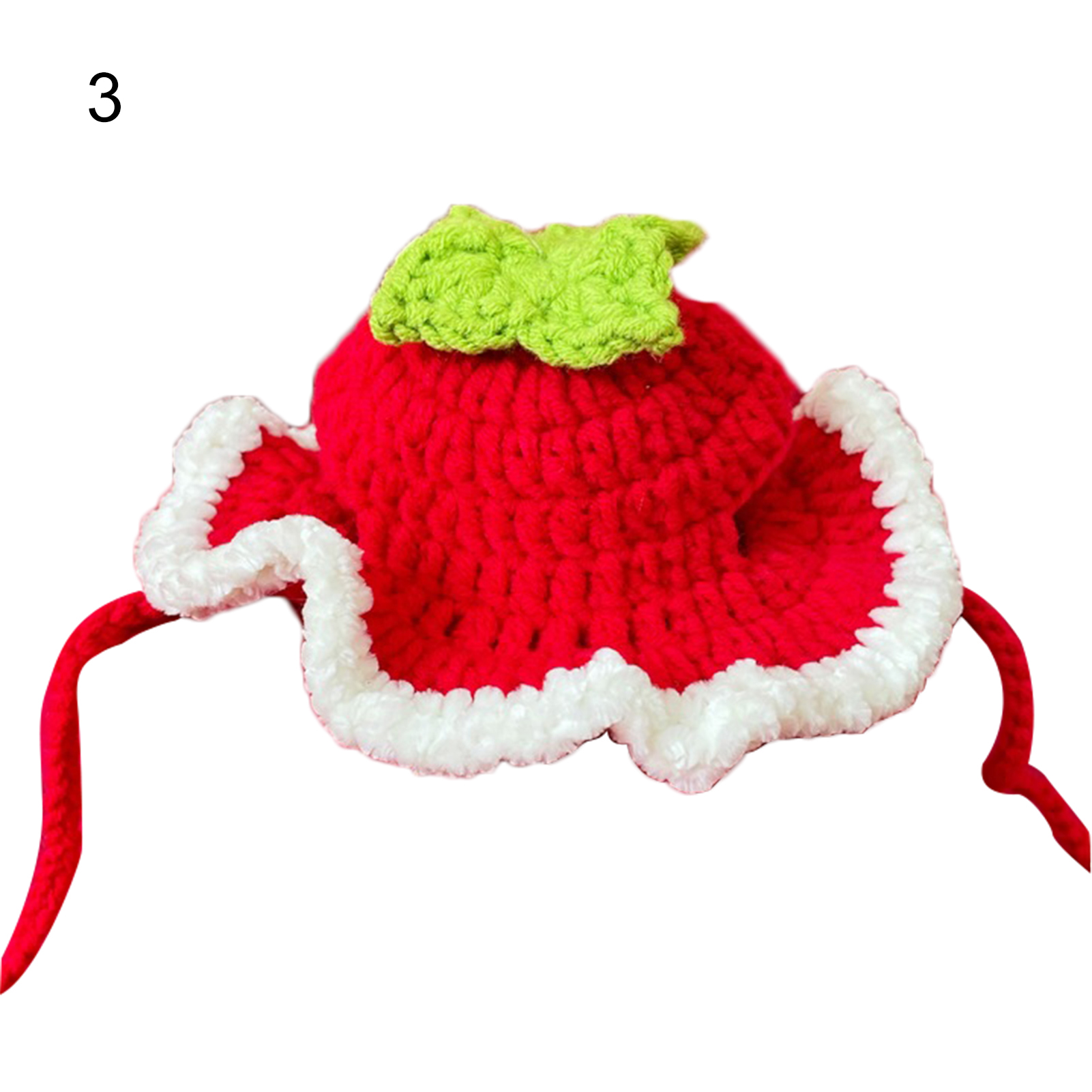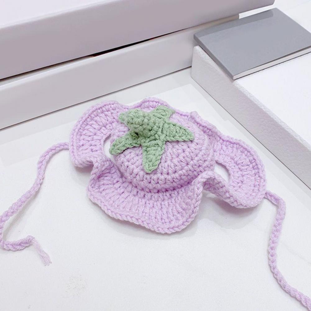Pet Hat Delicate Hemming Pendant Decor High Elasticity Cute Pet Adjustable Strap Knitted Hat for Party