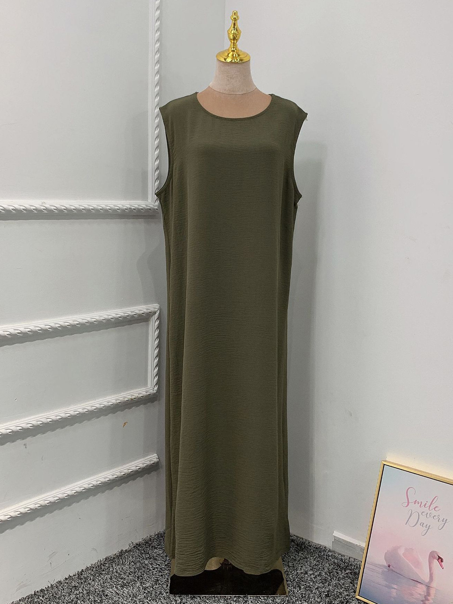 Plain Crepe 2 Piece Abaya Set Matching Outfit Dubai Turkey Women Muslim Modest Clothing Sleeveless Inner Slip Dress with Kimono