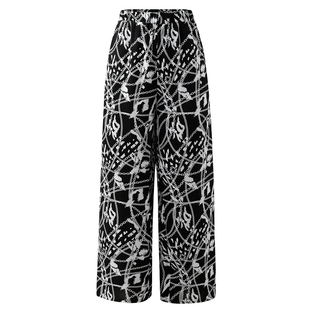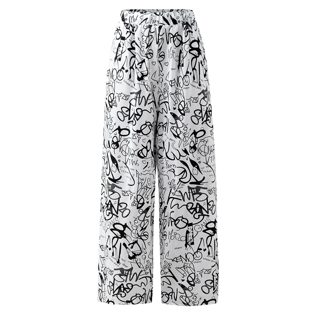 Plus Size Wide Leg Pants Women Spring Autumn Fashion England Style Print Elastic Waist High Street Loose Women's Pants Big Size