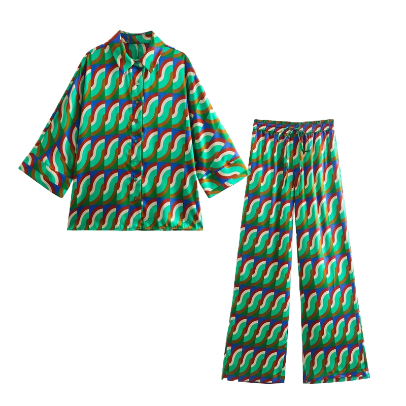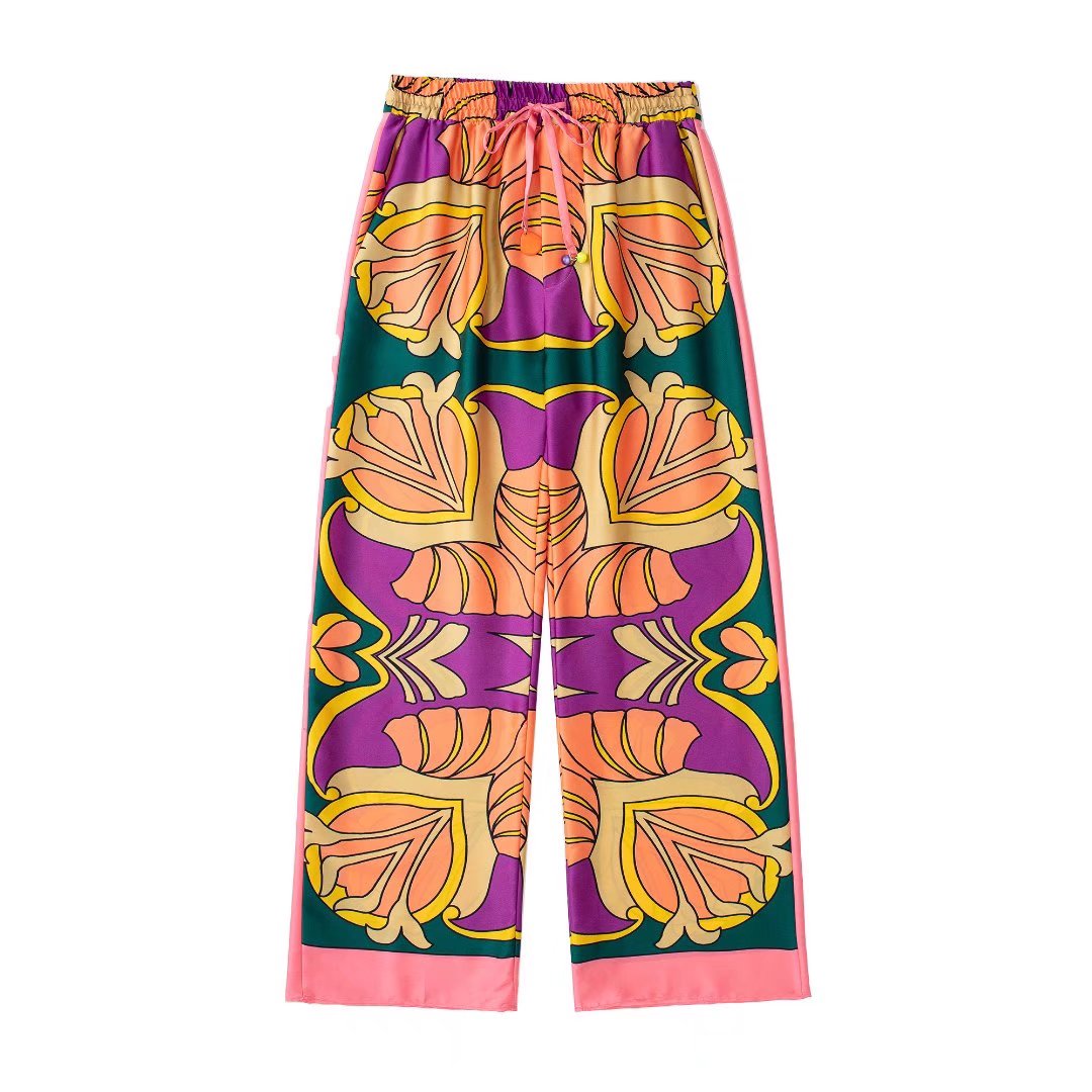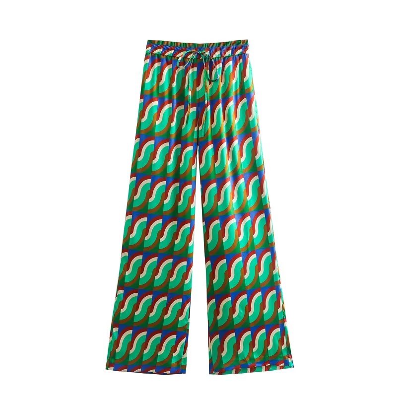Print Elegant Women's Suit Elastic Waist Straight 2 Piece set Suit Casual Chic Youth Vacation Suit