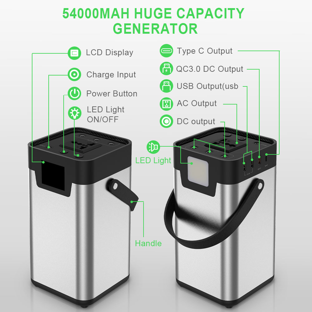 .QI RT X-DRAGON Portable Solar Power Station 200Wh Backup Lithium Battery 110V/220V 200W Pure Sine Wave AC Outlet