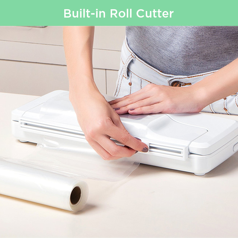The bag roll can be cut according to the size of the food, The cutter is magnetically fixed, easy to operate, sharp edge, neat cut