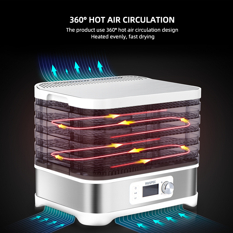 [{"attrName":"Brand Name","attrValue":"ROSPEC"},{"attrName":"Origin","attrValue":"Mainland China"},{"attrName":"Inner Container Material","attrValue":"Stainless steel"},{"attrName":"Inner Container Layer","attrValue":"Five Layers"},{"attrName":"Power","attrValue":"<600W"},{"attrName":"Certification","attrValue":"CE"},{"attrName":"Model Number","attrValue":"FD-1200E"},{"attrName":"Rated Power","attrValue":"400W"},{"attrName":"Digital control panel","attrValue":"LCD Display Screen"},{"attrName":"Capacity","attrValue":"10L"},{"attrName":"Timer adjust","attrValue":"1 - 24 hours"},{"attrName":"Electric voltage","attrValue":"220 - 240V"}]
