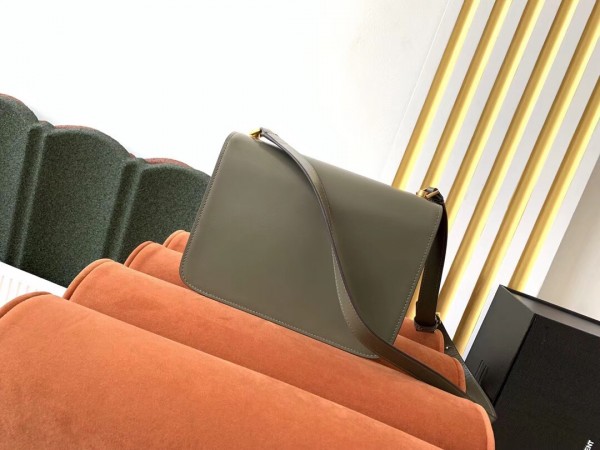 Although Saint Laurent is dishing out the drama for its AW19 collection, the Carre satchel seems to go in the opposite direction. A new addition to the label, its details are kept to a minimum with just a smattering of branding on the gold-toned square-clip fastening and an adjustable buckle on the shoulder strap. It’s cut from smooth leather to a boxy shape and complete with an internal zip pocket.
