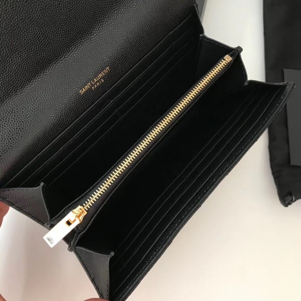 Saint Laurent Large Monogram Flap Wallet In Black Grained Leather