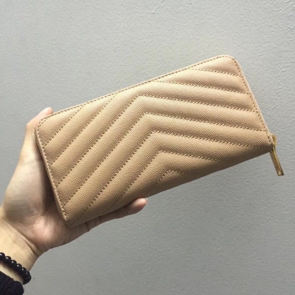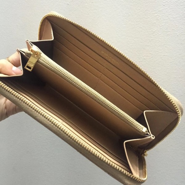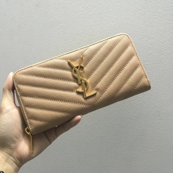 Saint Laurent Monogram Zip Around Wallet In Powder Grained Leather