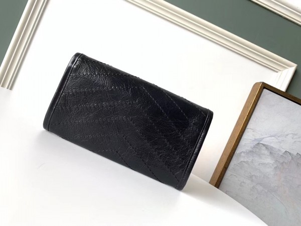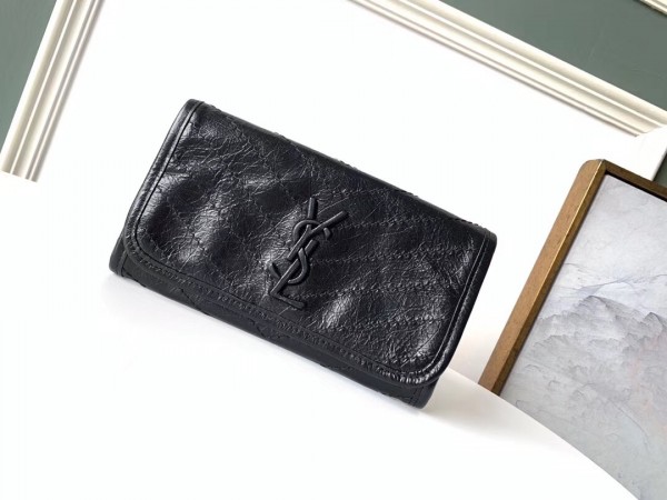 Inspired by the iconic Niki handbag, the Saint Laurent’s Niki large wallet in supple glossed-leather that’s crinkled to look somewhat vintage combines a functional design with fashion appeal. It’s embroidered with chevrons and decorated with iconic ‘YSL’ hardware. Sensorial yet functional, it is still large enough to fit all your daily essentials.