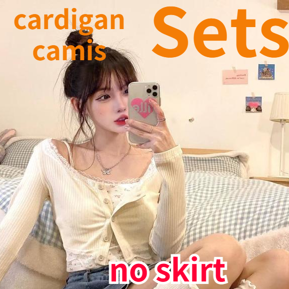 Sets Women Fresh Chic Summer Female Two Piece Single Breasted Cardigan Sexy Girlish Crops Camisole Tender Streetwear Holiday New