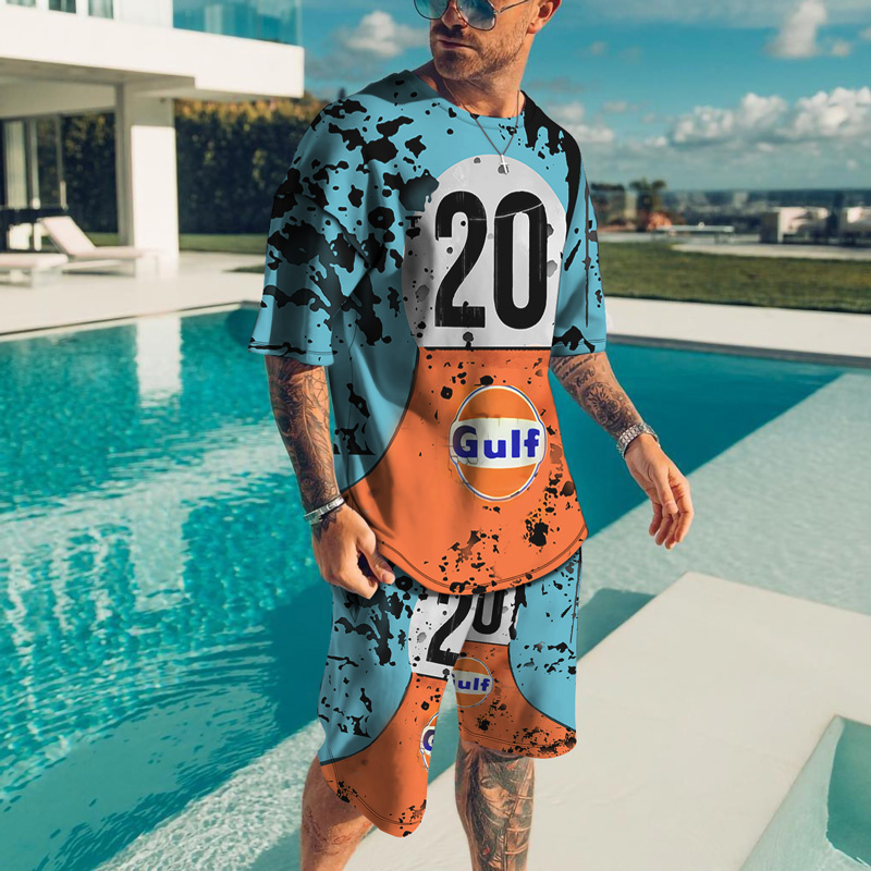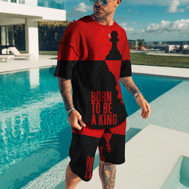 Silk Contrast Color Net Red Men's T-Shirt Suit With Trend 3D Printing Pattern Short-Sleeved Top Tee