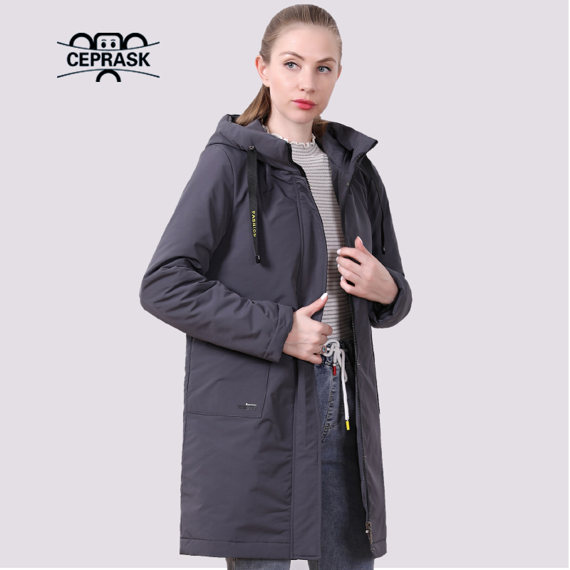 Spring Coat Women Thin Cotton Lined Warm Female Jacket Autumn Plus size Parka Long Quilted Hooded Outwear