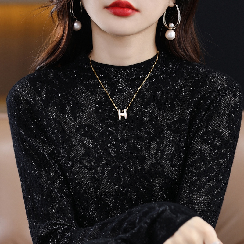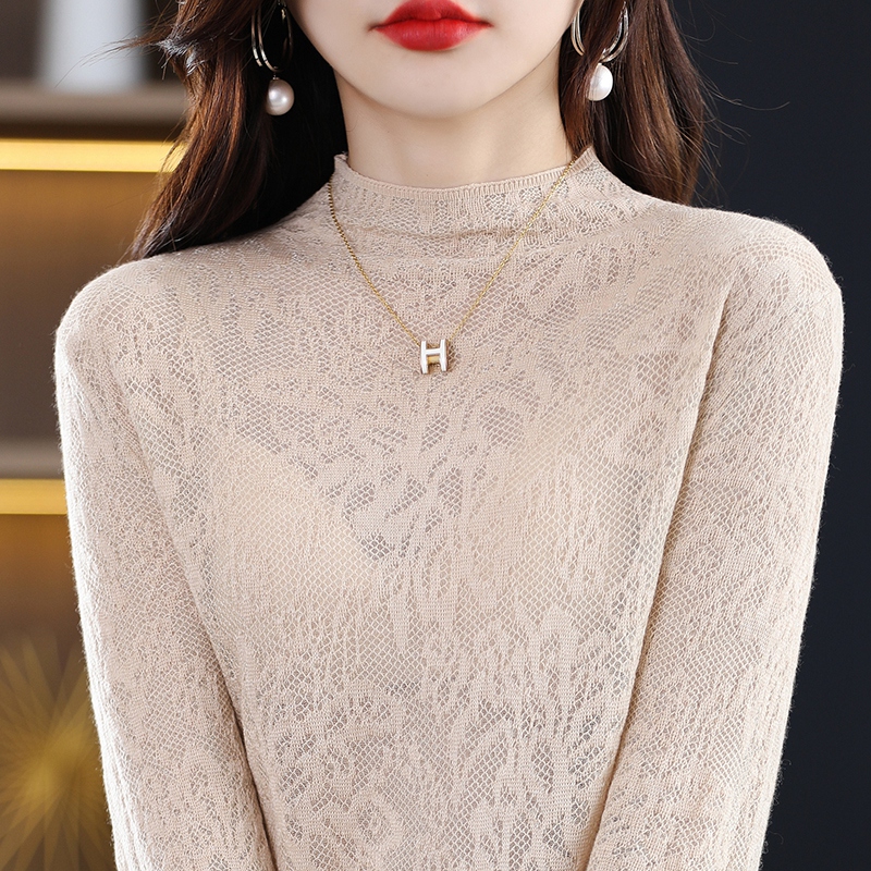 Spring and Autumn Three-dimensional Carved Half Turtleneck Lace Hollow Knitted Sweater Women's Pullover Sweater