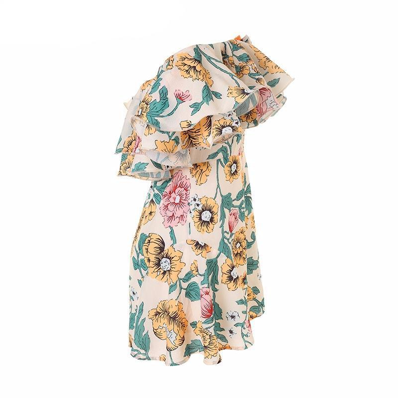 Summer Women Fashion Short Off Shoulder Jumpsuits Overall New Lady Floral Printed Playsuit Beach Holiday Wear Ruffle Romper