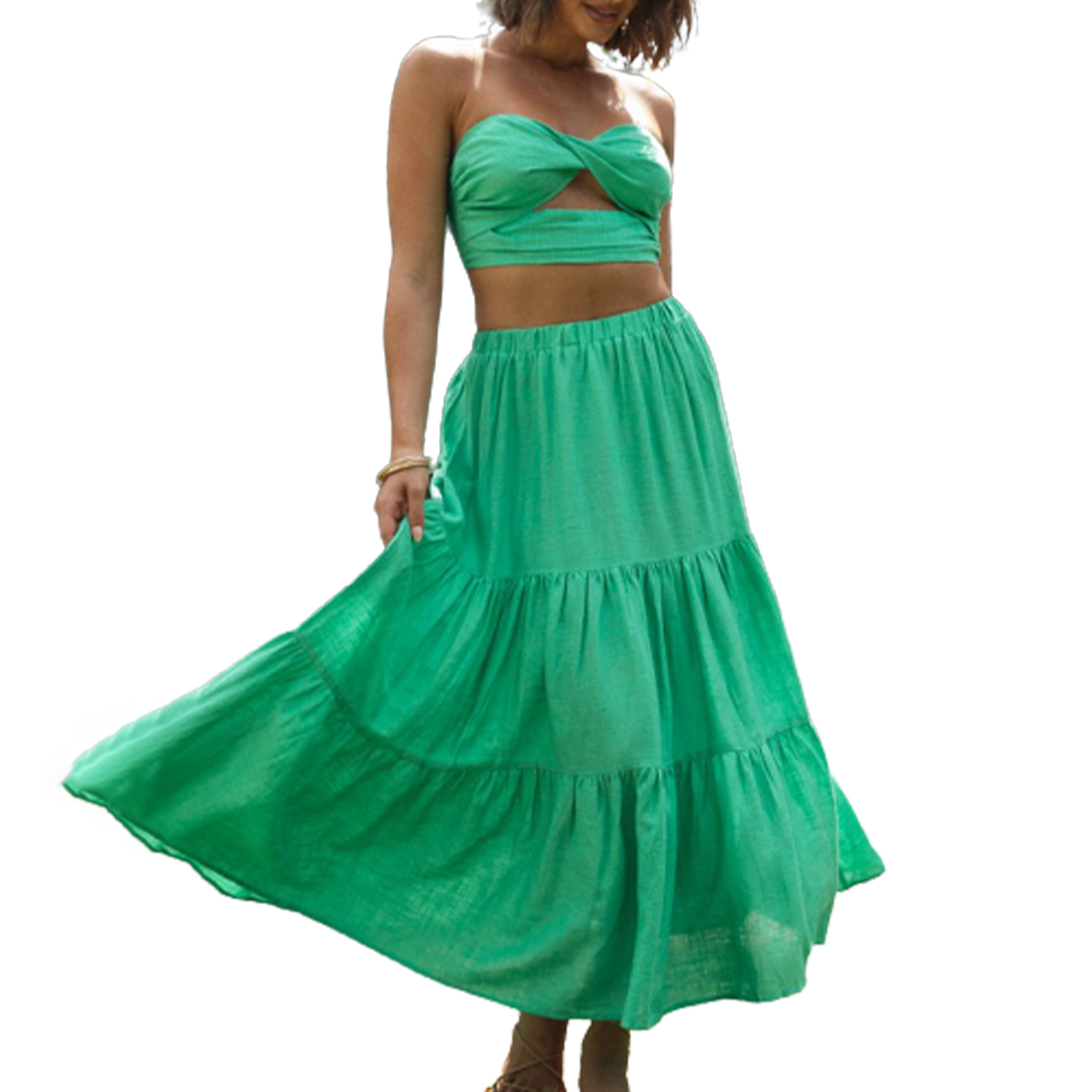 Summer Women Boho Floral Long Maxi Skirts Empire Beach Holiday Ruffles Skirt S-XL