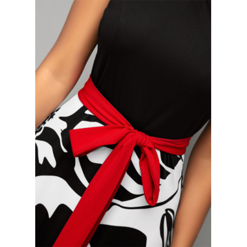 Summer Women's Sleeveless Printed High Waist Patchwork Lace Up Casual Long A-line Dress Elegant Holiday Robe Dresses